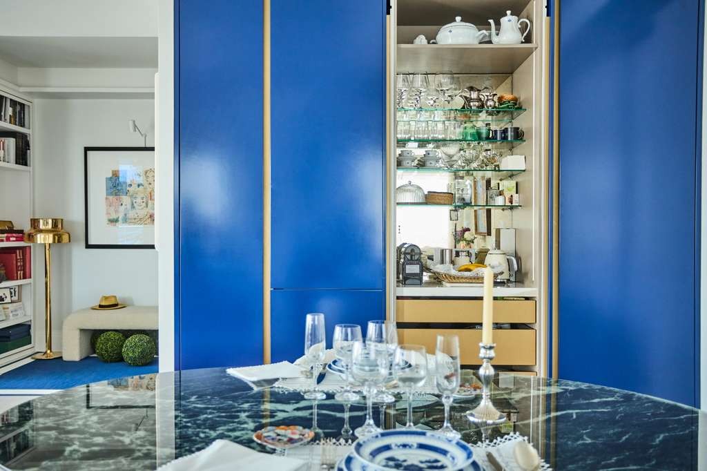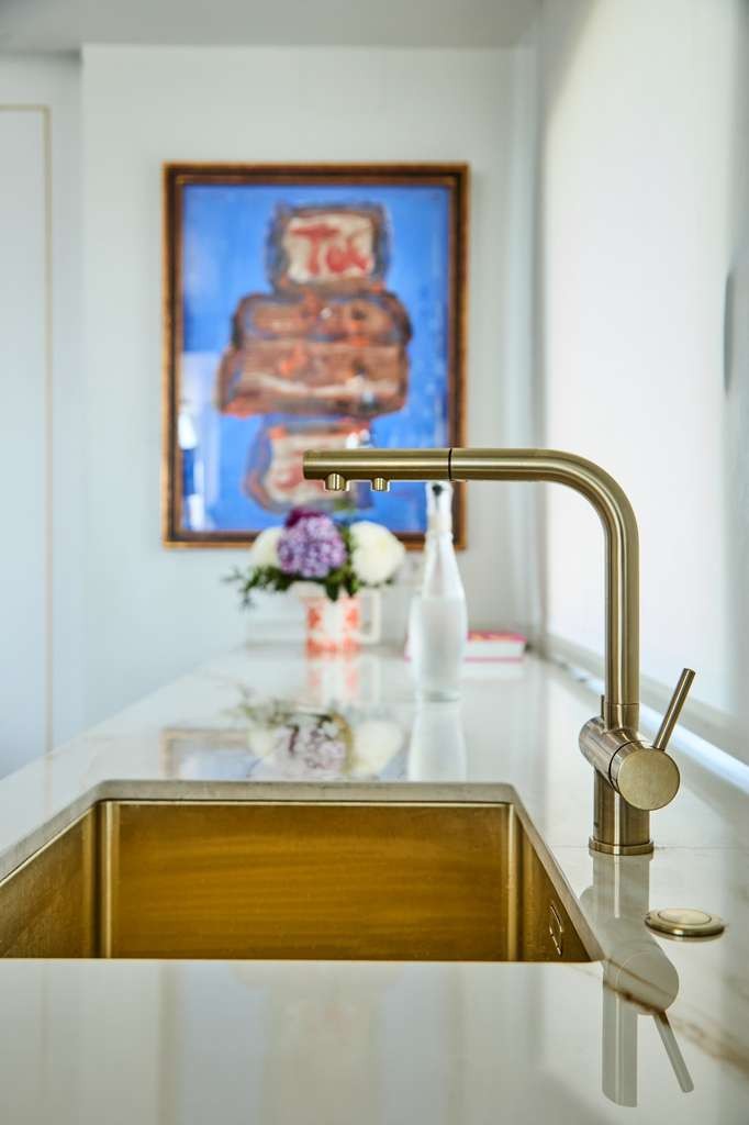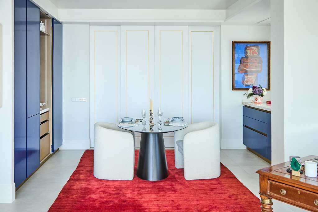 Mónica Gómez-Cuétara se mueve entre los detalles de la cocina que diseñó, un espacio masculino donde cada elección combina discreción y funcionalidad. Desde los acabados hasta los fuegos ocultos, todo refleja cómo el diseño puede adaptarse con inteligencia a la vida del propietario